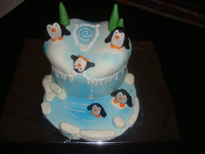 Aiden's first birthday :) Little penguin cake & cupcakes with a rice cereal igloo :)